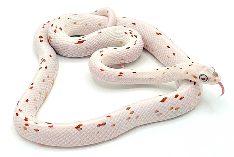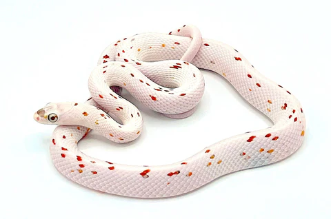Die Palmetto Kornnatter (Pantherophis guttatus) gehört zu den begehrtesten Designer-Kornnattern auf dem Markt. Ihr auffälliger, fast schneeweißer Körper mit kontrastreichen roten und orangefarbenen Punkten macht jedes Tier zu einem absoluten Unikat.